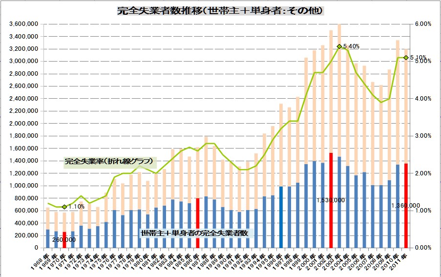 同様に本来は正社員での就労を希望していても、なかなか就職先が決まらず、仕方なく日々の生活費を得るために、パート労働をしながら就職先を探すことになっても、この人は統計上は失業者ではなく就業者とカウントされてしまうのも変な話しです。