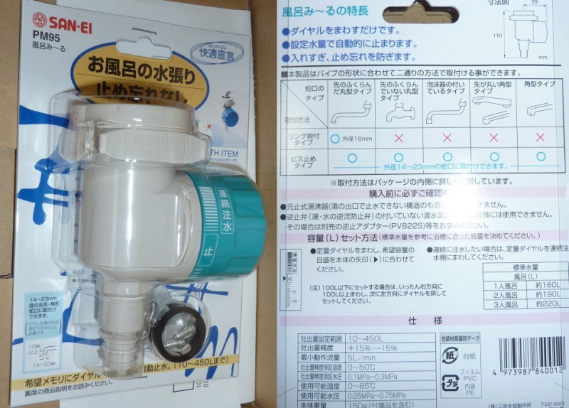 最近の出来事ですが、お風呂の給湯を自動的に止める蛇口に取り付ける器具「風呂みーる