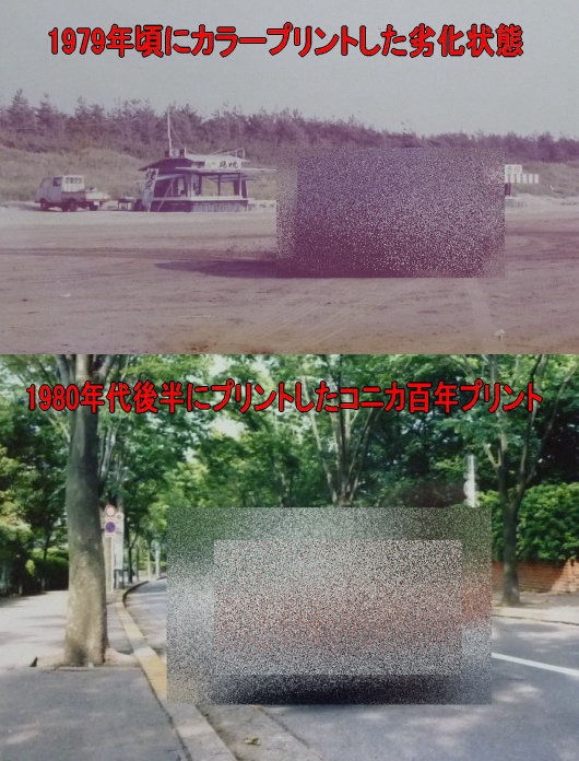 今回古い写真を撮影してみてわかったことは、1980年代以前、つまり30年前までのカラー写真のほとんどは、かなり色が抜け落ちてしまっています。それは前から言われていたので頭ではわかっていたつもりですが残念です。しかし唯一80年代に売り出した「コニカ百年プリント」で焼いた分は今でもちゃんと綺麗に色が残っていたのには驚きました。