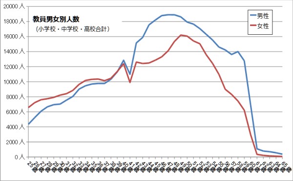 教員の数と言うのは本来なら出生数と深く関わってくるべきものですが、団塊ジュニアのような突出した数年間のために、日教組の言いなりで数を一気に増やし、その後、生徒数は年々減少していくのがわかっていながら、なにも手を打たず雇い続けてきたというツケが回ってきたと言うことです。